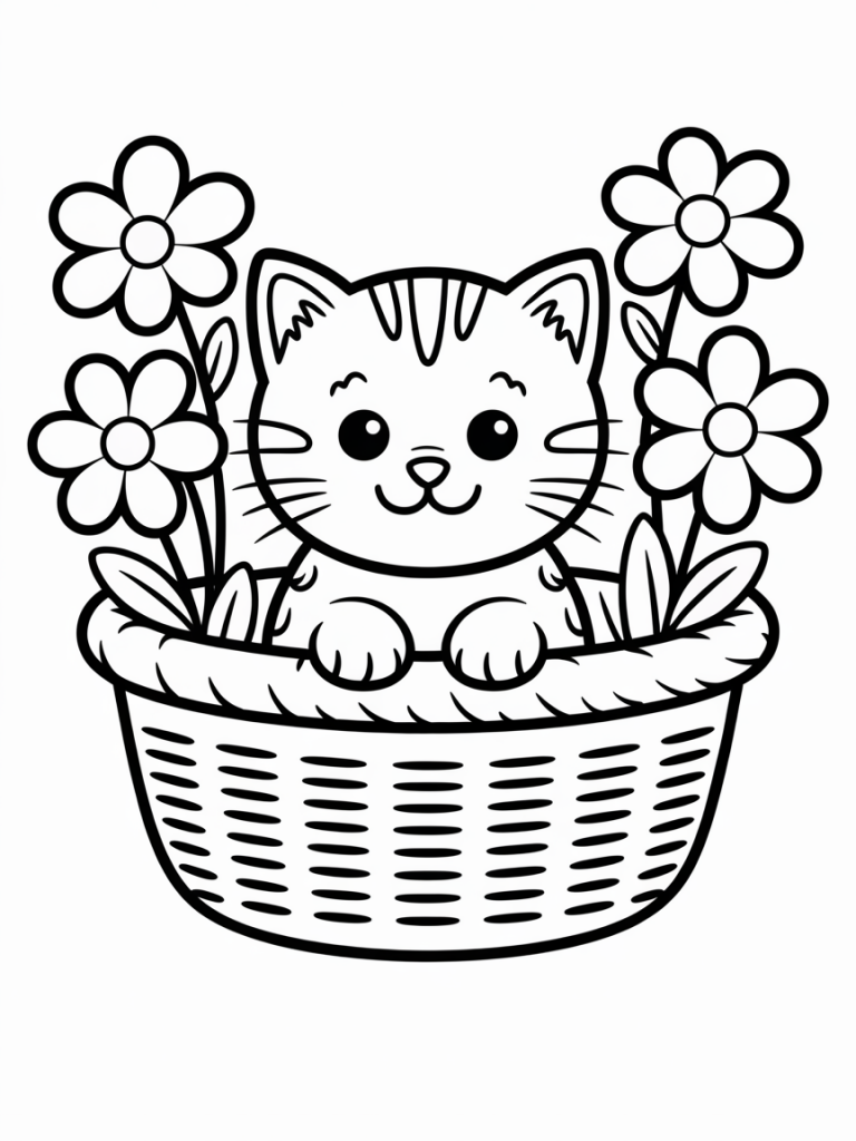 Katzenkind im Blumenkorb Kommentar verfassen / Katze / Von admin Ausmalbild kostenlos als PDF herunterladen